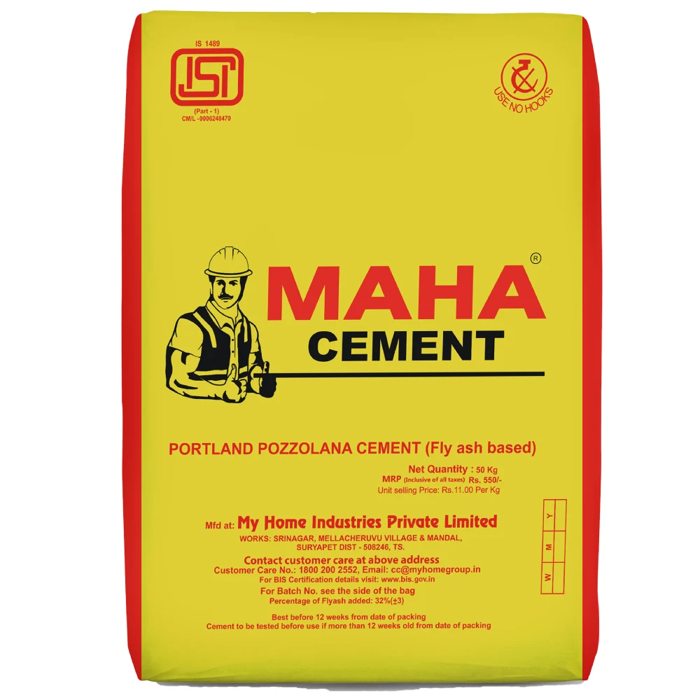 Maha PPC Cement is a premium blended cement created by inter-grinding high-quality clinker with superfine processed fly ash. This formulation is designed for superior durability and strength, making it ideal for a wide range of construction applications. Maha PPC Cement offers excellent resistance to sulfate attack and reduces heat generation during hydration, ensuring enhanced performance in large concrete structures and marine applications. Its strength and durability make it a preferred choice for projects that require reliable, long-lasting results.